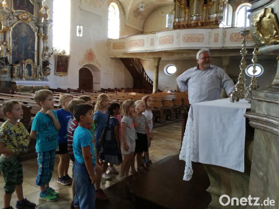 (exb) Pfarrer Arnold Pirner erkundete mit ihnen die Pfarrkirche St. Martin. Die Mädchen und Buben erfuhren neben geschichtlichen Hintergründen auch die Bedeutung der Altäre, des Taufbeckens, den Kirchenglocken und der Sakristei. Zum Abschluss durften die Kinder den Glockenturm besteigen, von dem man einen tollen Blick über Teile von Luhe hat. bild: exb
