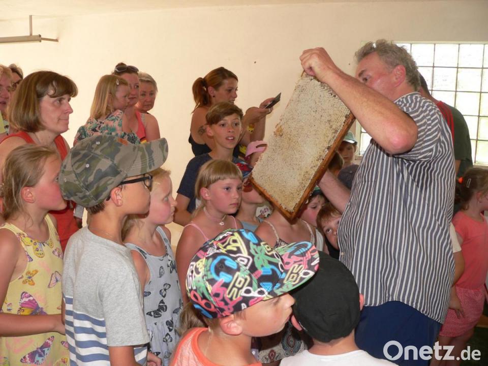 Trotz tropischer Temperaturen waren viele Kinder - teils mit ihren Müttern und Omas - gekommen. Die Buben und Mädchen drückten sich mit hochroten Backen die Nasen an den Scheiben des Bienenstocks platt, konnten sie doch miterleben, wie Bienen schlüpfen. „Und davon bis zu 2000 am Tag“, sagte Müller. Die Kinder lauschten aufmerksam seinen Erklärungen und wissen nun, dass eine Biene mit ihrem „Schwänzeltanz“ den anderen verrät, an welchen Blüten und Blumen es etwas zu holen gibt. Sie wissen, dass eine Biene nur 40 Tage lebt, sie aber am 16. Tag erst ausfliegt und dass die Herbstbienen jedoch ein halbes Jahr alt werden, damit das Volk überlebt. „Für ein Glas Honig müsste eine Biene rund eine Million Blüten besuchen“, erläuterte der Hobbyimker den staunenden Besuchern. Wichtig für die Honiglieferung seien vor allem die Raps- und die Löwenzahnblüte.
