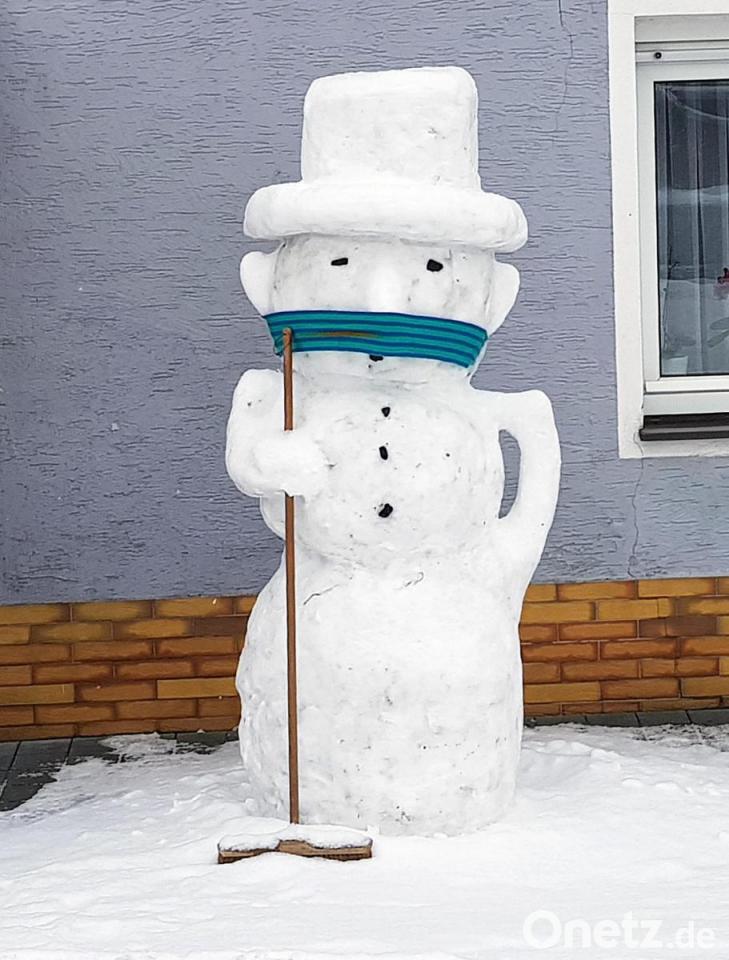 Ein stattlicher Zwei-Meter-Schneemann steht in Luhe. Das besondere an der Figur: Sie trägt eiskalt Maske, obwohl sie da so ganz ohne Kontakte zu anderen Schneemännern steht. Um den Schneemann bauen zu können, mussten Georg Hirsch und Sohn Dominik den kompletten Schnee aus der Einfahrt und dem gesamten Hof zusammenschieben. Knapp zwei Stunden dauerte es, bis die Figur so stolz vor dem Haus stand.