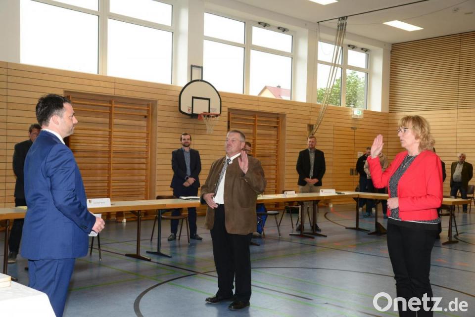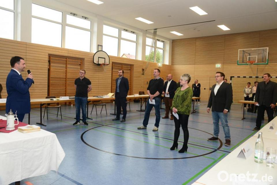 Marktrat Christoph Hösl, ältestes Mitglied des Marktrat, oblag die Pflicht, Hartl zu vereidigen, der dann wiederum die neuen Gremiumsmitglieder Julia Bayer, Maximilian Hotek, Benedikt Lindner, Christopher Mayer, Reinhard Püttner, Georg Schärtl und Günther Weiß vereidigte. Die wiedergewählte Markträtin Christine Post hatte am 28. April schriftlich ihren Rücktritt von diesem Amt erklärt. Nachrücker ist Bastian Braun, der in der Turnhalle Luhe vom Platz des Zuhörers an den Tisch der Räte wechselte.