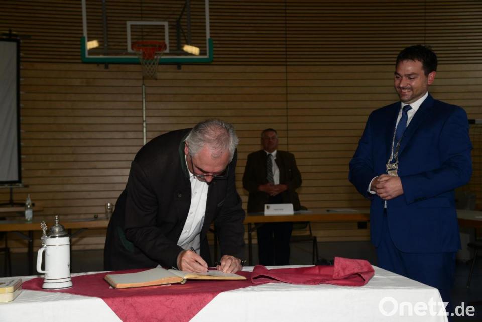 Zum Abschluss der Sitzung gab es einen feierlichen Moment: Der neue Bürgermeister Sebastian Hartl dankte seinem Vorgänger Karl-Heinz Preißer für dessen 24-jährige Tätigkeit. In Anlehnung an die Aussage Preißers, das Goldene Buch des Markt sei recht dünn, weil es nicht so viele Promis gab, die sich darin verewigen konnten, meinte Hartl zu seinem Vorgänger: „Du bist ein richtiger Promi.“ Preißer trug sich unter Beifall des Gremiums und der Zuhörerschaft in das Goldene Buch ein. Hartl meinte, es sei ein Glücksgriff, dass Preißer noch dem Marktgemeinderat angehört.