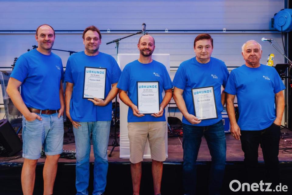 Im Mittelpunkt der Feier stand die Auszeichnung von Manuel Klötzl aus Schwandorf der seit Beginn, also vor 25 Jahren, Teil des Unternehmens ist. Klötzl, gelernter Heizungsbauer, trat im Gründungsjahr der SSG bei und entwickelte sich vom Schweißer bis zum Bauleiter. „Manuel ist fachlich herausragend und ein wichtiger Ansprechpartner für die Geschäftsführung – ein echtes Urgestein der SSG“, betonte Stangl.