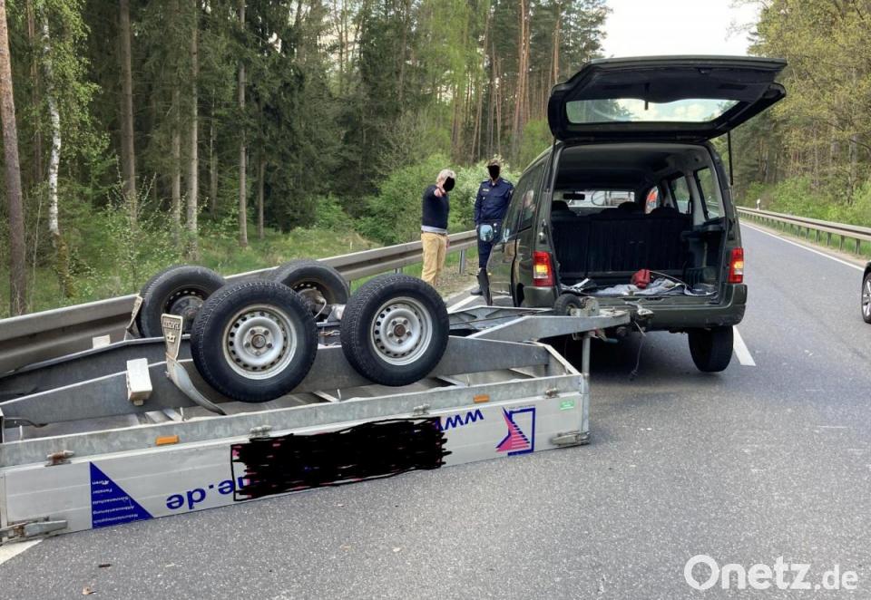 Am Montagmittag fuhr ein 64-Jähriger aus dem südlichen Landkreis Neustadt/WN mit seinem Citroen samt Anhänger von Etzenricht Richtung Oberwildenau. Aus unbekannten Gründen kam der Anhänger plötzlich ins Schlingern und überschlug sich. Der Wagen prallte danach noch gegen die Leitplanke, teilt die Polizeiinspektion Neustadt mit.