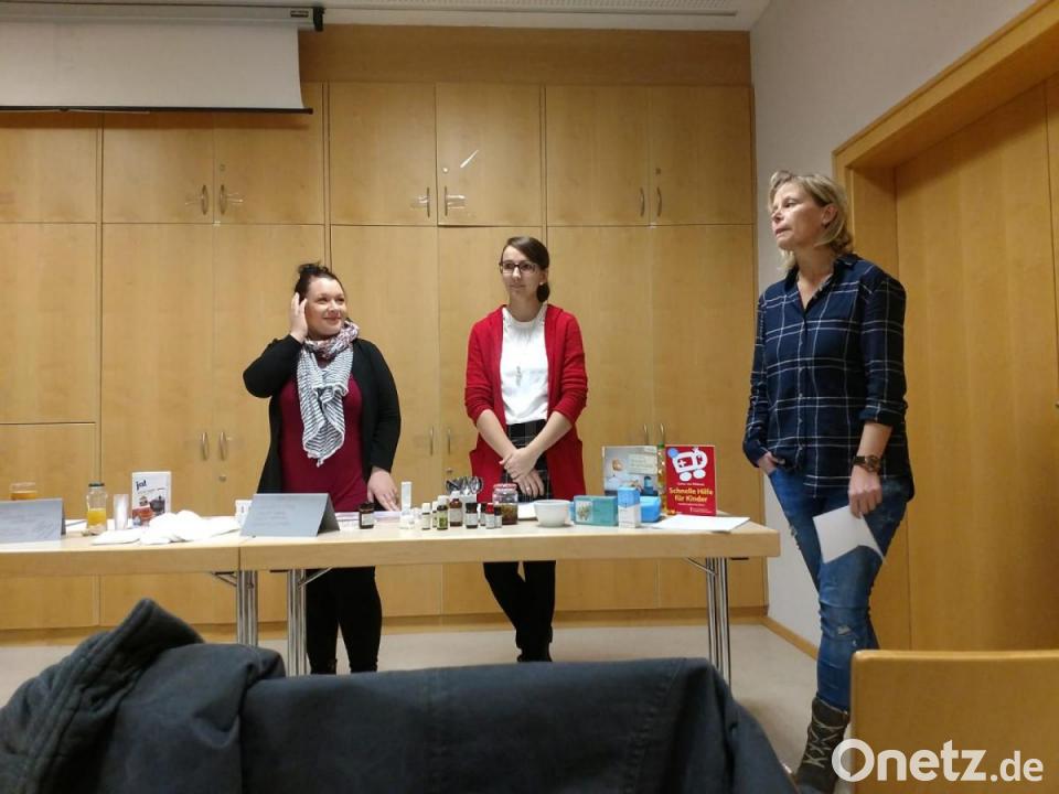 Die beiden Referentinnen betonten besonders, dass kranke Kinder, insbesondere Kinder mit Fieber, nicht in den Kindergarten oder die Schule, sondern nach Hause ins Bett gehören, um sich dort in Ruhe erholen zu können und zudem keine Dritten anzustecken. Sie informierten die Teilnehmer außerdem darüber, wann mit einem Baby oder Kind unbedingt zum Arzt gefahren werden muss. Auch müssen Antibiotika nicht immer die Mittel der ersten Wahl sein, bei manchen Krankheiten, wie zum Beispiel einer Mittelohrentzündung, sind diese aber unabdingbar.