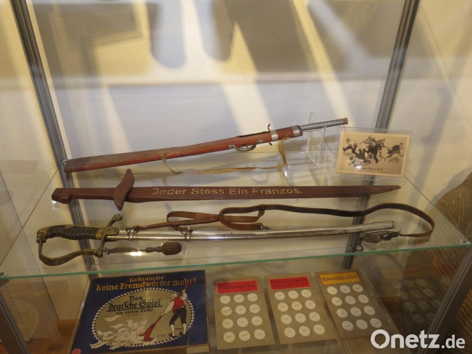 Die Ausstellung ist bestens bestückt, um eine Gesamtübersicht über diese vier grausamen Jahre zu dokumentieren. Kinderspielzeug und Christbaumschmuck verkörpern dabei die Absurdität schlechthin. Ein Kinder-Holzschwert trägt etwa verhetzende Aufschriften. Auch Bilderbücher handeln vom Krieg. Ebenso irrsinnig erscheinen dem Betrachter die Postkarten, die Kriegsgetümmel im Schlachtfeld und sogar Tötungsszenen zeigen. Ausgestellt werden Teile von Soldatenuniformen, Pickelhauben von ganz schlicht bis Gold durchwirkt, Bierkrüge, Waffen, Weihnachtsgeschenke für Soldaten und mehr. Außerdem möchte Roland Weis, der das Ausstellungskonzept erarbeitete, einen Christbaum aufstellen. Dieser sollte mit absonderlichem Schmuck wie kleinen Kanonen, Kriegsfahrzeugen oder Mini-Soldaten geradezu lächerlich den Krieg als "normalen" Alltag demonstrieren.