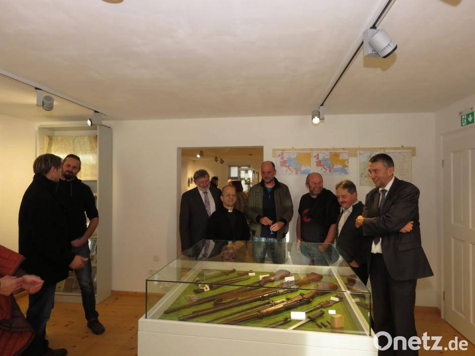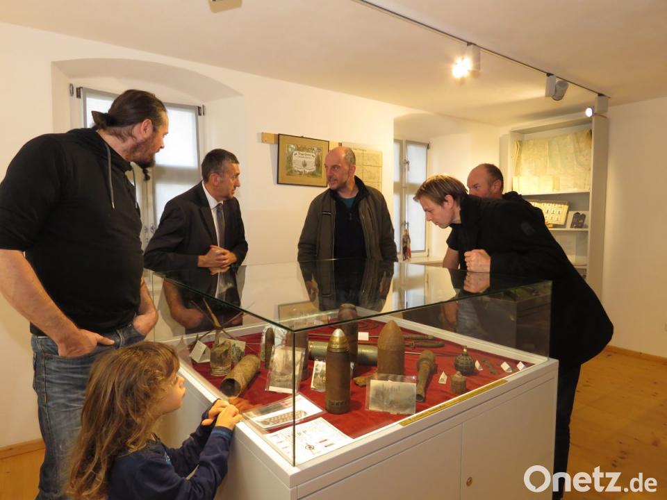 Bürgermeister Josef Schmidkonz geht nach seiner Eröffnungsrede zur Sonderausstellung im Museum sehr still durch die Museumsräume. Nachdenklich schaut er in die Vitrinen, betrachtet die Waffen, Granaten und Bomben und sagt: "Wenn ich das hier sehe, denke ich, warum ein derartiger Irrsinn überhaupt immer wieder möglich ist."