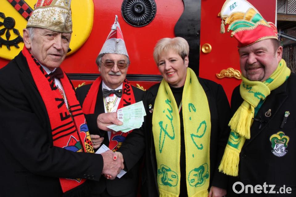 Vor dem Beginn des Mähringer Faschingszugs überreichten Präsident Heinz Kilian und "Zeremonienmeister" Erwin Jaspers vom Faschingsverein "Rosamunde" eine stattliche Spende in Höhe von 700 Euro an den Vorsitzenden der Faschingsgesellschaft "Tursiana" Tirschenreuth, Klaus Benke und deren Präsidentin Iris Fennerl. Sie geben das Geld an die Familie des Leukämieerkrankten fünfjährigen Hugo weiter. Die Spende ist der komplette Erlös des Kuchenbüfetts vom Mähringer Seniorenfasching. Zudem ging Heinz Kilian noch mit der Spendenbüchse herum, so dass weit über 600 Euro zusammen kamen. Der Faschingsverein rundete die Summe auf 700 Euro auf.