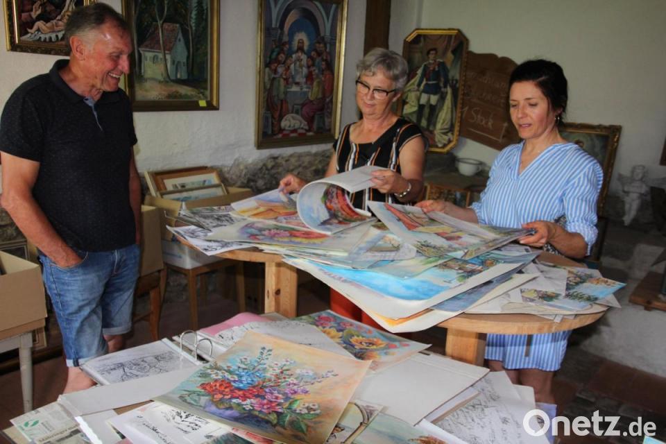 Mehr als 200 Bilder habe sie verkauft, berichtet Achatz stolz. "Ich habe gar nicht gewusst, dass es so viele Fans für die Bilder meines Vaters gibt." Vor allem jene Bilder, von denen sie dachte, dass sie nicht weggehen, verkauften sich rasend schnell. Ein Mann aus Mitterteich etwa wollte alle Bilder mit Motiven aus der Porzellan- und Glasstadt mitnehmen, erzählt Achatz. Weiter berichtete sie von einem jungen Mann aus Bad Neualbenreuth, der von einem Erotik-Bild ganz angetan war und es schließlich auch kaufte. Aus Mähring selbst kamen weniger Leute - die Tochter des Künstlers führt dies aber auf die Tatsache zurück, dass nahezu in jedem Haus der Gemeinde ein "Schicker" hängt. Die Interessierten kamen und gingen den ganzen Tag über, sagt Achatz. Viele suchten auch das Gespräch mit ihr. Auch ihr Bruder Albert Schicker kam mit seiner Enkelin vorbei. Beide zeigten sich begeistert von der Idee, diese Bilder so an den Mann oder die Frau zu bringen. "Es wäre schade, sie im Keller verrotten zu lassen." Albert Schicker freute sich mit seiner jüngeren Schwester über den hervorragend besuchten Abverkauf der Bilder des Vaters. Da bei Karin Achatz immer noch viele Bilder lagern, vor allem viele Zeichnungen mit Bleistift oder Tusche, können sich Interessierte bei ihr melden und einen Termin vereinbaren unter Telefon 0151/50 418 072.