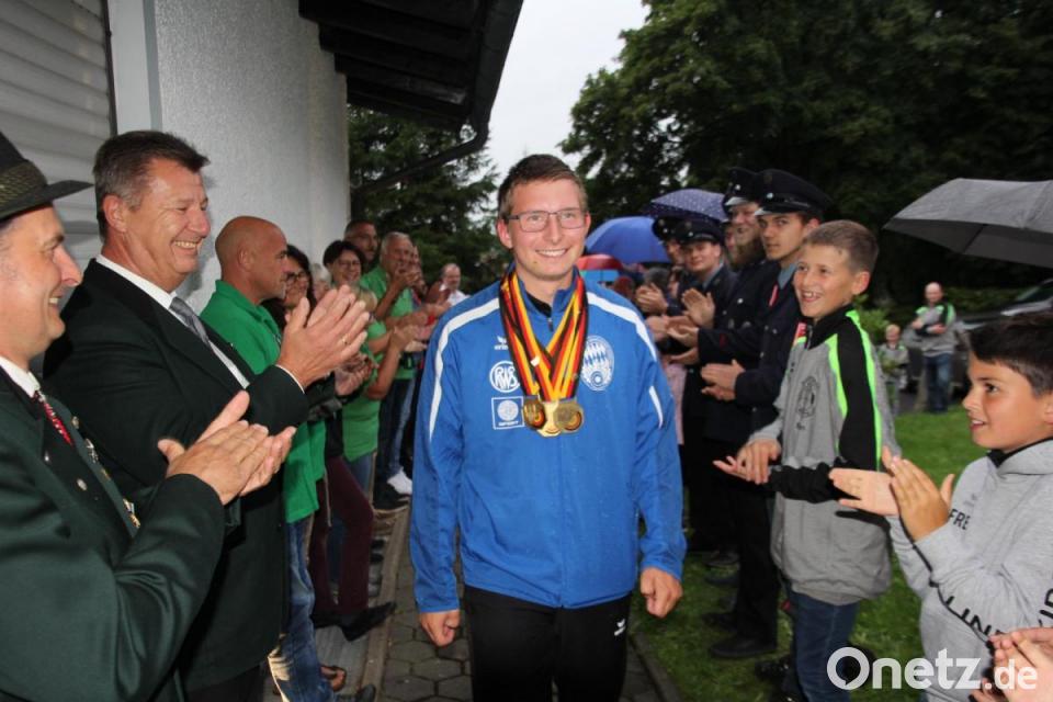 Klar, dass der Schützenverein "Linda" Mähring mächtig stolz auf seinen Nachwuchsschützen ist. Spontan organisierten Schützenmeister Martin Riedl und sein Team noch am Sonntagabend mittels eines Rundrufs an alle Vereine einen Empfang für Florian Beer. Angedacht war zunächst auch ein Festzug durch Mähring, doch wegen des anhaltenden Regens wurde darauf verzichtet.