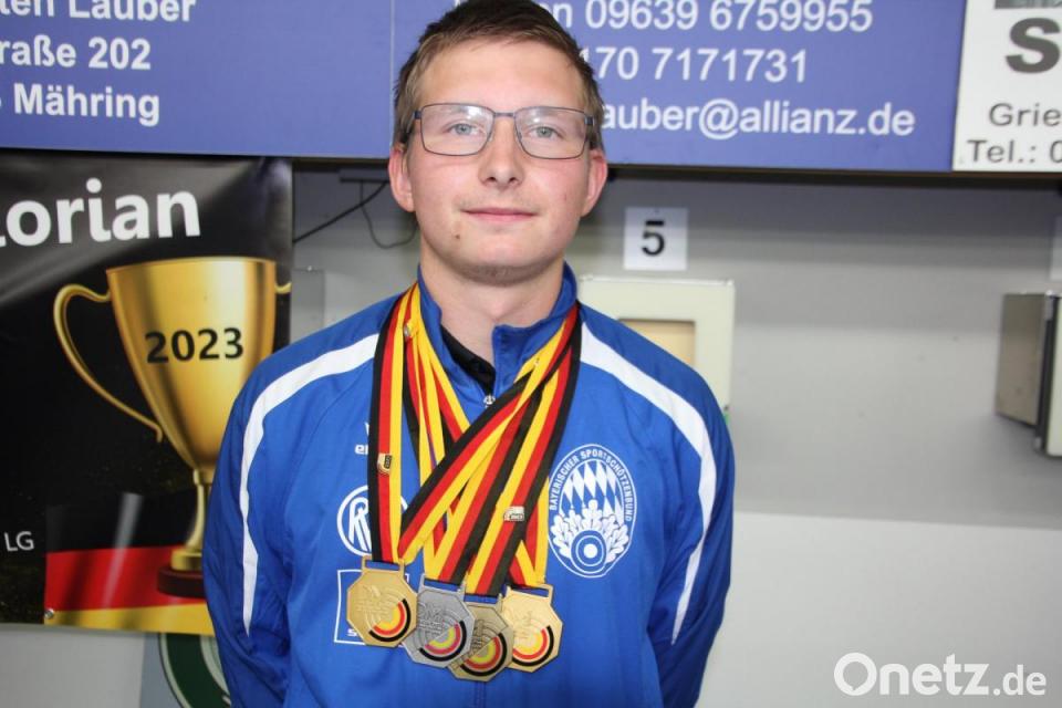 Der 18-jährige Sportschütze Florian Beer vom Schützenverein „Linda“ Mähring eilt aktuell von Erfolg zu Erfolg. Wurde er im vergangenen Jahr Bayerischer Meister, so räumte der junge Sportschütze heuer bei der Deutschen Meisterschaft in München-Hochbrück richtig ab. Der Mähringer kam als zweifacher Deutscher Meister mit einem ganzen Medaillensatz nach Hause. Er war vergangene Woche bei der „Deutschen“ einer der erfolgreichsten Schützen überhaupt: In der Klasse der Junioren II (Alter 17/18 Jahre) erhielt er zwei Gold-, sowie eine Silber- und eine Bronzemedaille.