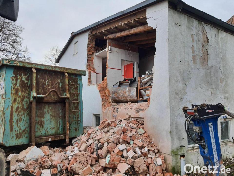 Ganz wird der Gebäudeteil aber noch nicht gleich entfernt: Durch die Öffnung in der Mauer wird nach den Worten von Klaus Meyer zuerst noch das Inventar der Zimmer ausgeräumt.