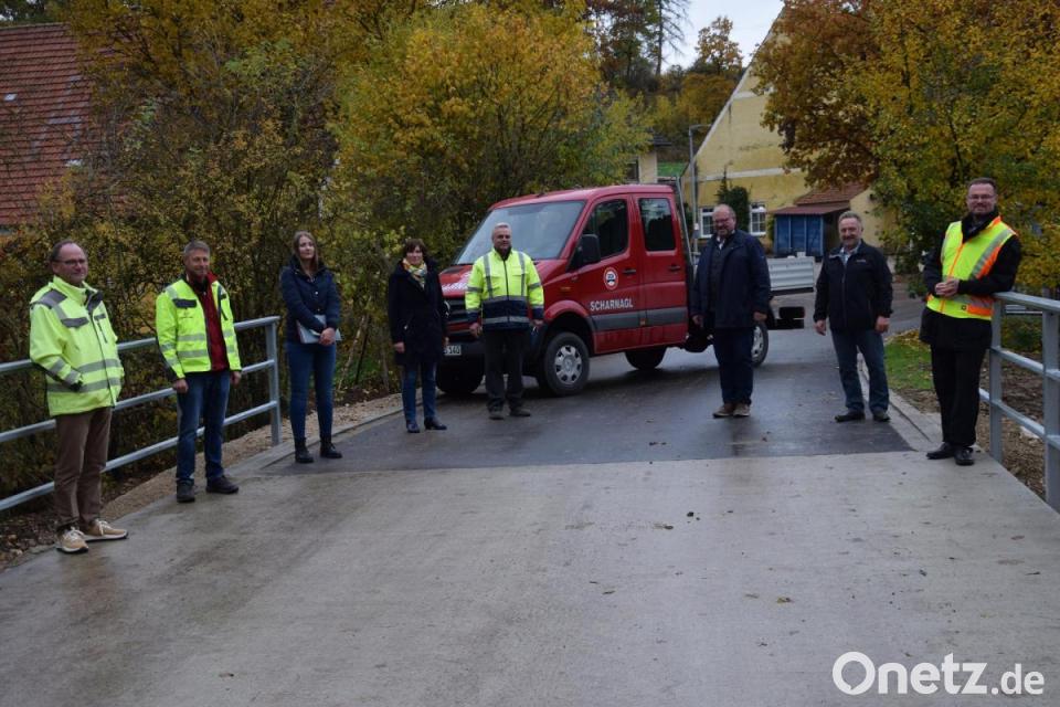 Nun besichtigte Bürgermeister Florian Junkes zusammen mit seinen beiden Stellvertretern Manfred Braun und Johann Seitz sowie den Vertretern der Baufirma Scharnagl und dem Planungsbüro Seuss Ingenieure GmbH die 370 Meter lange Dorfstraße und nahm diesen Abschnitt ab. Als erfreulich bewertete er, dass die Behelfszufahrt bleiben kann und als zusätzliche Anbindung an die Kreisstraße genutzt werden. „Mit den zuständigen Behörden ist dies so vereinbart worden“, sagte der Bürgermeister.