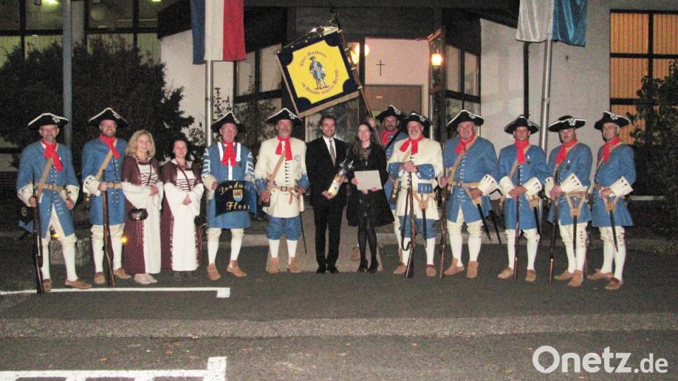 Für eine lautstarke Verabschiedung sorgte draußen die Landwehr Floß unter Hauptmann Franz Schmidt. Marketenderinnen übergaben ein Geschenk, Schützen feuerten Ehrensalut für ihr förderndes Mitglied. Ehefrau Barbara stammt aus Floß.