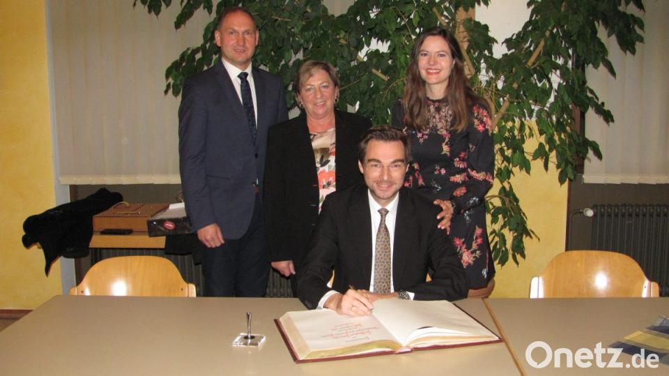 Oetzinger sprach von schönen Jahren, in denen er viele persönliche Bindungen nicht nur in der Verwaltung aufgebaut habe. Er wünsche seinem Heimatort weiterhin nur das Beste. Beifall brandete auf und mit Sekt wurde angestoßen. Barbara und Stephan Oetzinger bestätigten, dass der Lebensmittelpunkt der Familie Mantel bleiben werde. Söhnchen Franz geht hier in den Kindergarten und soll auch die Schule besuchen. Zusammen mit allen Räten trug sich das Ehepaar ins Goldene Buch des Marktes ein.