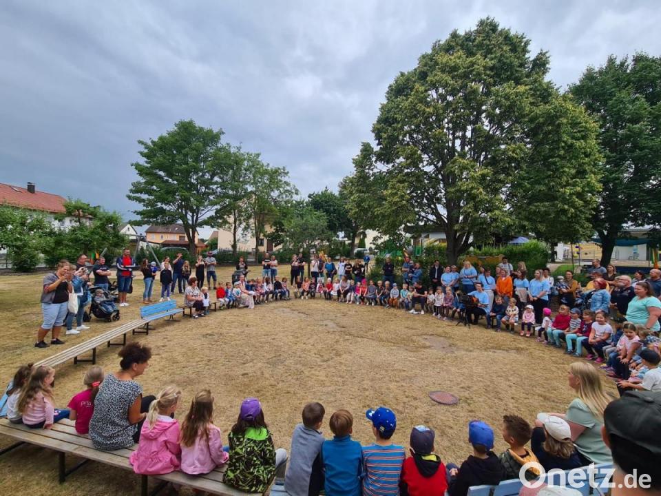 Endlich konnte wieder ein Kindergartenfest des Kinderhauses St. Elisabeth stattfinden, und entsprechend groß war die Besucherzahl. Das wolkige Wetter und kleinere Schauer taten der guten Stimmung der Kinder, Eltern und des Personals keinen Abbruch. Der Elternbeirat um Vorsitzende Julia Böckl-Guß hatte sich im Vorfeld viel Mühe mit den Vorbereitungen gegeben und bot neben Kaffee und Kaltgetränken selbstgebackene Kuchen an. Diese waren von fleißigen Müttern und Vätern gespendet worden. Als Attraktionen für die kleinen Gäste gab es ein breites Angebot von Tattoos, einen Stand zur Gestaltung eigener Buttons bis hin zu einem Glücksrad. Für Unterhaltung sorgten die Kinder der orangen, gelben, blauen und roten Gruppe mit kleinen musikalischen Einlagen. „Darauf haben die Kinder schon lange hin gefiebert,“ wusste Kinderhausleiterin Doris Weigl. Besonders freuten sich die Eltern, dass sie auch einen Blick in die Gruppenzimmer des Kindergartens und der Krippe werfen konnten. Dort standen die Erzieher für Fragen zur Verfügung oder bastelten mit den Kindern Bügelperlen, Armbänder und Traumfänger. Mit einem Abschlusslied im Garten wurde der schöne Kindergartennachmittag beendet.