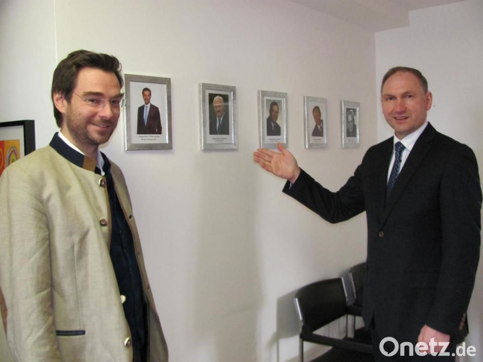 „Wir erinnern mit dieser Galerie an alle meine Amtsvorgänger seit 1945,“ erklärt der neue Bürgermeister Richard Kammerer. Die Portraits zeigen alle seine sechs Vorgänger - von Josef Ziegler bis Stephan Oetzinger. Ziegler hatte das Amt von 1946 bis 1948 inne. In dieser Zeit widmete er sich vor allem dem Wiederaufbau. Im folgte Josef Janner (Trautner), der bis zu seinem Tod 1967 Bürgermeister war und somit die längste Amtszeit aller Nachkriegsbürgermeister vorweisen kann. In seine Ära fiel der Bau der Schule, jetzt Gemeindezentrum, in der nach ihm benannten Bürgermeister-Josef-Janner Straße sowie die Gründung der beiden Zweckverbände zur Wasserversorgung und dem Betrieb der gemeinsamen Kläranlage mit der Gemeinde Weiherhammer. Von 1967 bis 1972 amtierte Johann Bäumler, der erste in der Reihe, der seinen Amtssitz im heutigen Rathaus in der Etzenrichter Straße hatte. Bäumler wurde 1978 vom erst kürzlich verstorbenen Erwin Klemm abgelöst, dessen Name untrennbar mit der Wiedererlangung der politischen Selbstständigkeit verbunden ist.