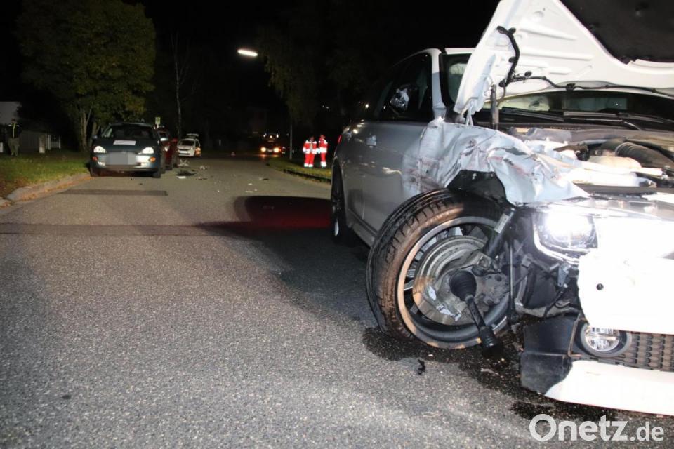 Am Montagabend gegen 20 Uhr kam es in der Etzenrichter Straße in Mantel zu einem Unfall mit drei beteiligten Fahrzeugen. Der Fahrer eines 3er BMW war in Richtung Freihunger Straße unterwegs. Dabei übersah er zwei Fahrzeuge, die ordnungsgemäß am Straßenrand geparkt waren. Er krachte in die linke Seite eines Opel Insignia, der daraufhin auf einen vor ihm stehenden Ford Focus geschoben wurde.