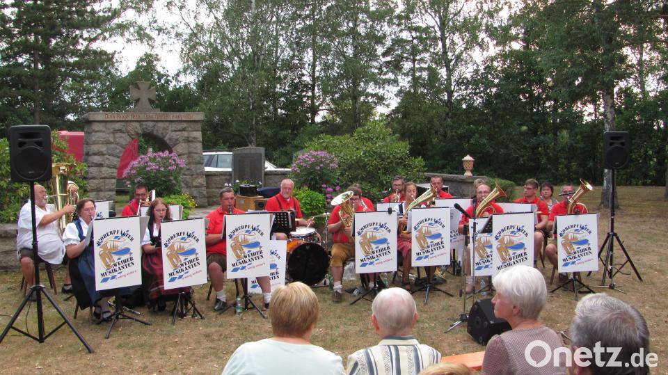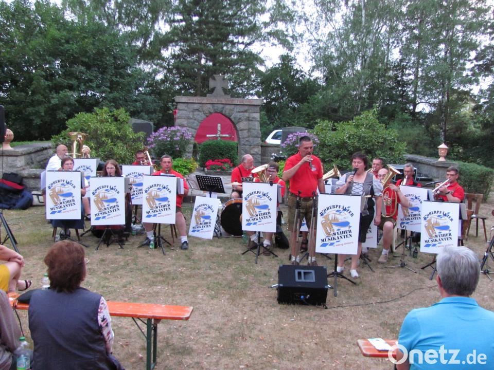 Bei „Kaiserwetter“ begrüßte Harald Puckschamel, Vorsitzender des Fördervereins St. Moritz am Samstag die zahlreich erschienen Zuhörer zur vierten Serenade auf dem Platz zwischen Moritzkirche und Kriegerdenkmal. Da der Förderverein derzeit Spenden für die Restaurierung der Gemälde in St. Moritz sammelt, freute sich der Vorsitzende, dass die Bäckerei Ziegler das Gebäck gespendet hatte und die Metzgerei Guber die Veranstaltung ebenfalls unterstütze Auch die Oberpfälzer Weihermusikanten unten Leitung von Arne Mack haben auf Gage verzichtet und nur für eine Brotzeit gespielt. Arne Mack gab nur kurz die Einsätze und saß ansonsten mit seinem Instrument im Ensemble. Brigitte Beer führte durch das Programm und ergänzte die Darbietungen mit Anekdoten und Witzen die für Heiterkeit sorgten. Außerdem glänzte sie bei „Mädel ruck her zu mir“ und bei der abschließenden „Guten Nacht“ als Sängerin Im Duett mit Kapellmeister Arne Mack. Nach Montana Marsch und Anna Polka ging es zum Strohwitwer über. Darauf erklang dann sehr beschwingt der „Sorgenbrecher“. Nach den Jubiläumsklängen folgte die „Polka mit Herz“ die sich in die Herzen der Zuhörer einschmeichelte und die „Heidrun-Polka“ und „Ein halbes Jahrhundert schlossen den ersten Programmteil. Nach der Pause lebte die K und K Monarchie mit „Kaiserin Sissi“ auf. „Mädel ruck her zu mir“, wird der Franzl zu Sissi gesagt haben, so Moderatorin Beer. In die Abteilung „Liebe ging es mit: „Kuschel-Polka“ und „Zärtlichkeiten. Auch am Abend können „Morgenblüten“ verstreut werden, so Brigitte Beer und das gab dann „Magische Momente“, die genau zur blauen Stunde nach Sonnenuntergang erklangen.