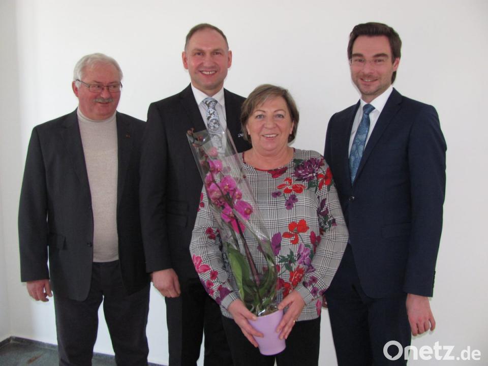 Bürgermeister Richard Kammerer (Zweiter von links) feiert mit der Rathausbelegschaft seinen Einstand. Er dankt Stellvertreterin Rita Steiner für die Führung der Amtsgeschäfts bis zu seiner Wahl. Vorgänger Stephan Oetzinger (rechts) und Altbürgermeister Josef Wittmann (links) wünschen ihm eine lange Amtszeit.