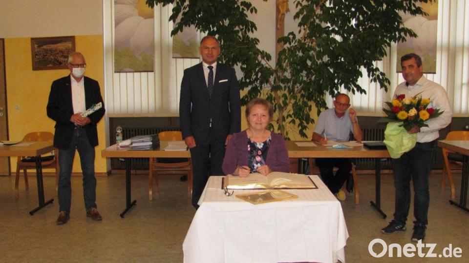 Der Marktgemeinderat verabschiedete Christine Härtl aus dem Gremium. Sie hatte bei der allegemeinen Verabschiedung nach der Kommunalwahl krankheitsbedingt gefehlt. Härtl gehörte dem Marktrat von 2002 bis 2008 an und dann wieder von 2014 bis 2020. In den letzten sechs Jahren war sie Vorsitzende des Rechnungsprüfungsausschusses. Sie wirkte in den Ausschüssen für Kultur- Freizeit und Jugend sowie Familie, Senioren und Soziales mit. Trotz ihrer ruhigen, besonnenen Art scheute sie keine Diskussion. In den Weihnachtssitzungen hatte Härtl die treuen Zuhörer immer mit einem Piccolo Sekt überrascht. „Liebe Christine, wir sind mit dir kommunalpolitisch durch Dick und Dünn gegangen und haben so manche schwierige Entscheidung gemeinsam getroffen", sagte Bürgermeister Richard Kammerer. „Du hast dich hervorragend in die anspruchsvolle Marktratsarbeit eingebracht und viel Freizeit für die Gemeinde geopfert“, lobte Kammerer. Härtl habe ihr Amt stehts mit großem Verantwortungsbewusstsein und mit Weitblick ausgeübt. Sie erhielt eine Urkunde und ein Geschenk und durfte sich in das Goldene Buch der Marktgemeinde eintragen.