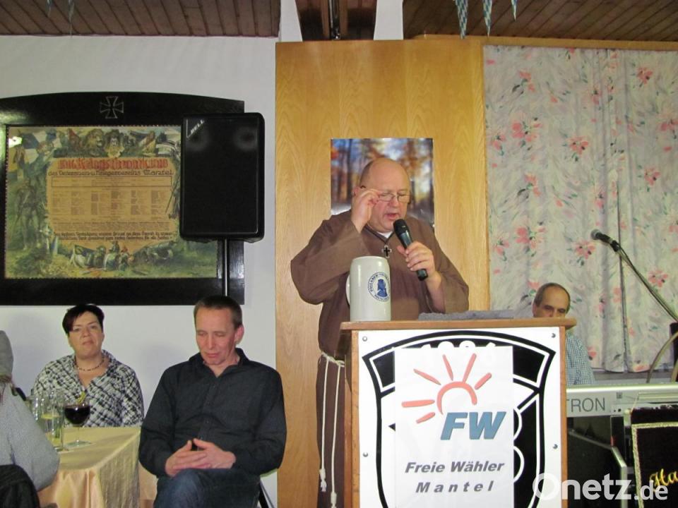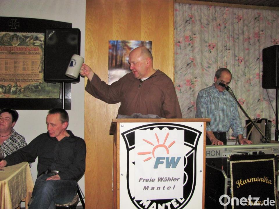 Vorsitzender Friedrich Janner dankte jenen Mitbürgern, die die Freien Wähler mit Geschichten“ für die Fastenpredigt versorgt hätten. „Wer derbleckt wird, für den ist das eine Auszeichnung, denn nichts ist schlimmer, als in einer Starkbierrede nicht erwähnt zu werden", stellte er fest. Der „Harmonika-Franz“ sorgte für die musikalische Begleitung und hatte für den zahlreich erschienen Zapfwellenstammtisch „Alt's Glump“ auch „Resi, i hol di mit meim Traktor ab“ auf Lager. Unter großem Hallo trat dann Pater Klaus auf. „Ja, das letzte Mal, da ich mich nach Mantel hab' verirrt, da hat in Bayern noch der Seehofer regiert.“ Auf Hubert Aiwanger gemünzt war: „Doch nach der Wahl er nicht mehr knurrt, sondern höchstens wie ein Kätzchen schnurrt. Der „Opfelsoft Hubert“ hat den Koalitionsvertrag nicht einmal richtig gelesen, da ist er schon unterschrieben gewesen." Passend für die Landwirte kam der Trinkspruch: „Melkt der Bauer seinen Stier, trank der Trottel zu viel Bier.“