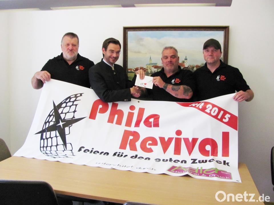 (sei) "Feiern für einen guten Zweck" war das Motto der dritten Phila-Revival-Party. Sie war bestens besucht, und die Gäste genossen es, die Freunde von früher wieder zu treffen, die Musik aus der Jugend zu hören, zu tanzen und Spannung beim legendären Kofferspiel zu erleben. Wie schon in den Vorjahren spendeten die Organisatoren den Reinerlös verschiedenen Organisationen. Am Donnerstag kamen Harald Fenzl, Reinhold Meier und Herbie Sciotto ins Amtszimmer von Bürgermeister Stephan Oetzinger und überreichten 500 Euro als Spende für die Kinder- und Jugendarbeit der Marktgemeinde. Ob es 2020 eine vierte Phila-Revival-Pary geben wird, stehe noch nicht fest, ließen die Organisatoren verlauten.