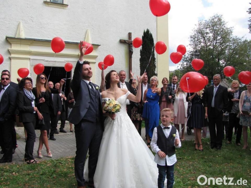 Die standesamtliche Trauung fand bereits im Juli ebenfalls in Mantel statt. Tafelmeier ist Tormann beim VfB Mantel, und seine Fußballmannschaft stand Spalier. Das Paar musste seine Geschicklichkeit beim Schießen auf ein Fußballtor beweisen. Auch die Reservistenkameradschaft gratulierte neben Familie und Freunden. Ein gemeinsames Hobby der beiden ist der regelmäßige Besuch im Fitness-Studio. Nach der Trauung ließ die Hochzeitsgesellschaft rote Herzluftballons in den Himmel steigen. Mit einem feschen Oldtimer ging es dann mit Familie und Freunden zur Feier ins evangelische Vereinshaus nach Weiden.