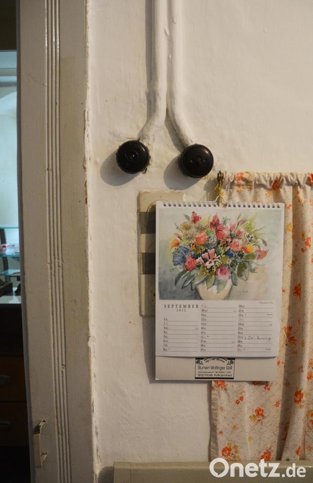 An der Wand in der Wohnküche hängt noch der Kalender von 2012. Der Auszug war fluchtartig. Maria Hildegard Fischer verließ ihr Schloss vor sechs Jahren von einen Tag auf den anderen. Notizen zu Arztterminen und Geburtstagen zeugen vom damaligen Alltag der Mantelerin mit ihrem Mann Albert. Sie lebten zusammen seit der Heirat 1957 in dem historischen Haus.