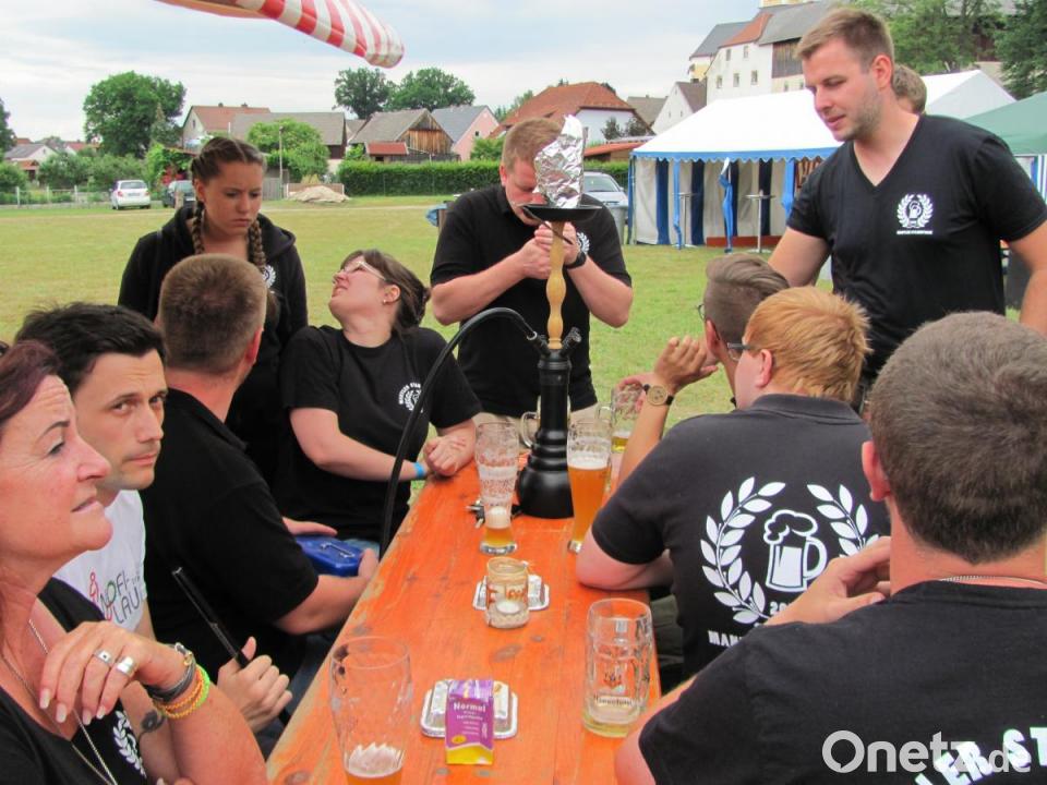 Um 16 Uhr war Start des Getränkeausschankes, da kamen die Besucher erst nur zögerlich und die Stammtischmitglieder vergnügten sich mit dem Rauchen einer Shishapfeife. Am Nachmittag unterhielt das Duo Schneeberger aus Burglengenfeld mit bodenständiger Volksmusik, aber sie hatten auch fetzige Hits der "Münchner Freieit" oder der "Ersten allgemeinen Verunsicherung" auf Lager. Später legte DJ Kryos auf.