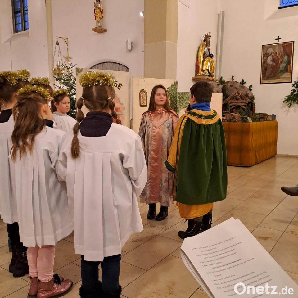 "Weihnachten ist ein Fest der Liebe und des Friedens", so Pfarrvikar Robert Amandu in der Kinderchristmette in der katholischen Pfarrkirche. Im Krippenspiel konnten die Gottesdienstbesucher, darunter viele Kinder, hören und sehen, wie sich sechs Sterne unterhielten. Sie sagten, es sei so dunkel und kalt auf der Welt und dass das Licht der Sterne die Menschen erreichen müsse. Bei der nachgespielten Herbergssuche begleiteten die Sterne Maria und Josef auf ihrer Reise nach Bethlehem.