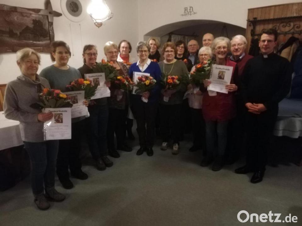 Pfarrer Kohlhepp bedankte sich an diesem Abend bei •Alois Schinabeck (38 Jahre Sänger), Siglinde Schinabeck (37), • Hildegard Aigner (30), Brigitte Rindl und Margot Kloppmann (25), Dagmar Tischner (24), Anna Strobl (21), Theresia Gratzke (17), Ulrike Schiller (15), Christa Strobl (3). Des Weiteren Veronika Prölß, Hans Hoch, Ingrid Schnupfhagn und Raphael Pillny.