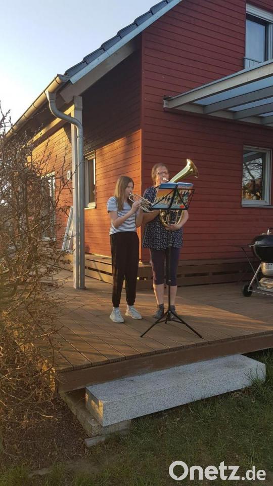 Ob mit Flöte oder Posaune, große und kleine Musiker spielen jeden Abend in Mantel zur Aufmunterung in der Coronakrise.