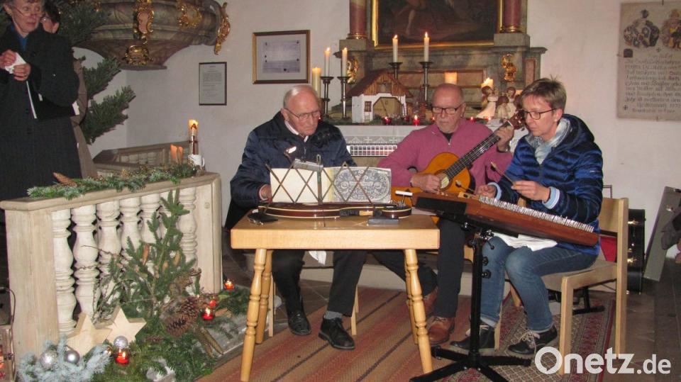 Mit der Inzeller Weihnachtsmusik von Siegfried Spranger eröffnete die Saitenmusik von Alfons Bogner, Ulrike Rauch und Ottmar Braun mit Zither, Hackbrett und Gitarre die besinnliche Stunde. Der Katholische Kirchenchor Weiherhammer unter Leitung von Gotthard Betz legte mit „In das Warten dieser Welt“ von Felix-Mendelssohn-Bartholdy in Bearbeitung von Klaus Heizmann nach. Die Saitenmusik gliederte sich als Sänger komplett in den Kirchenchor mit ein. Gut gefiel auch „Jesus mein Retter naht“ nach einer Melodie von Gerard Breas und Satz von Klaus Heizmann.