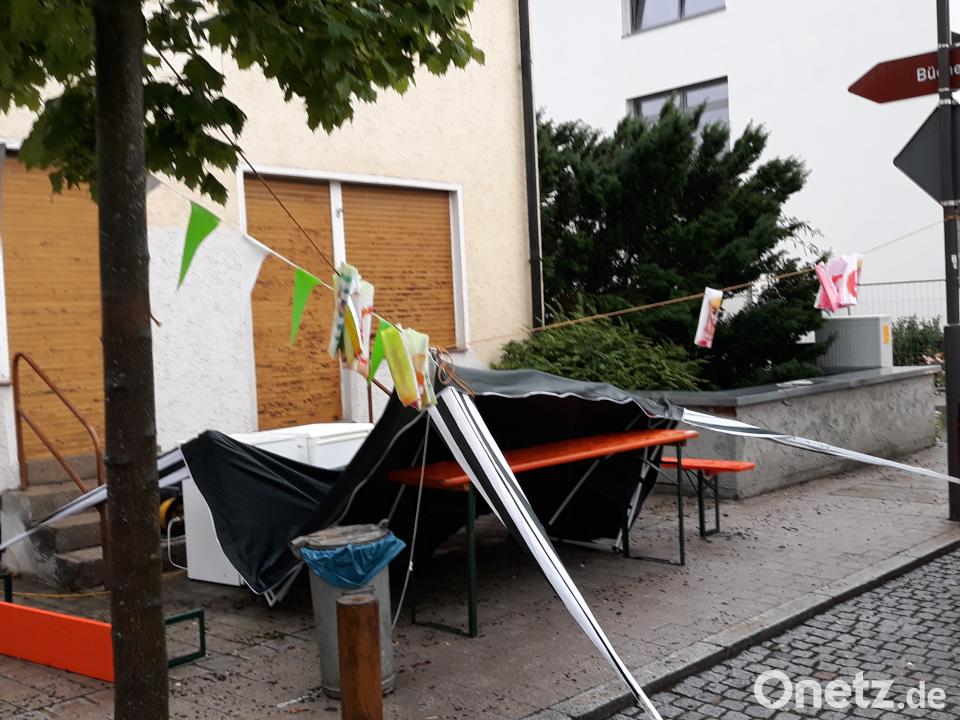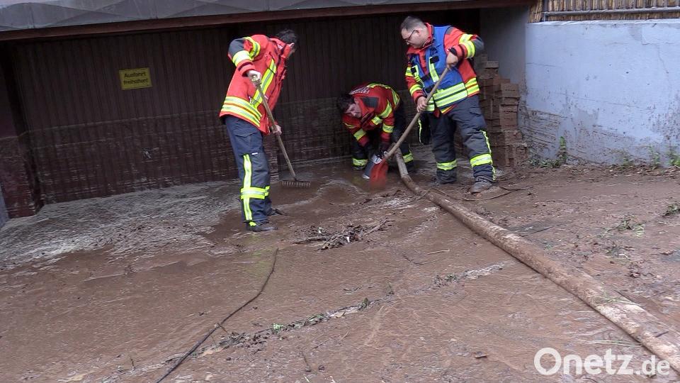 In Schirmitz staute sich Wasser auf der Durchgangsstraße. In Seitenstraßen spülte der Regen auch Erdreich von Feldern mit sich. In der Folge verteilte sich Schlamm eine Handbreit über die Naabstraße und in Gärten. Auch in einige Keller lief die Brühe. Die Schirmitzer waren mitten in den Vorbereitungen auf das Bürgerfest. Der Gewitterregen drückte Pavillons zu Boden. "Noch bevor ein Einsatz gemeldet wurde, hatten sich die Feuerwehrler am Feuerwerhaus gesammelt," berichtet Bürgermeister Ernst Lenk. Kameraden und Bürger packten an, räumten in kurzer Zeit auf, und das Fest konnte beginnen. "Es haben wahnsinnig viele Anwohner geholfen", sagt Lenk, der am Sonntag betroffene Hausbesitzer besuchte und ausdrücklich allen Helfern dankt. Von Hobbymeteorologen habe er mehrere Niederschlagsmeldungen bekommen: Spitzenwert 55 Liter pro Quadratmeter binnen einer halben Stunde.