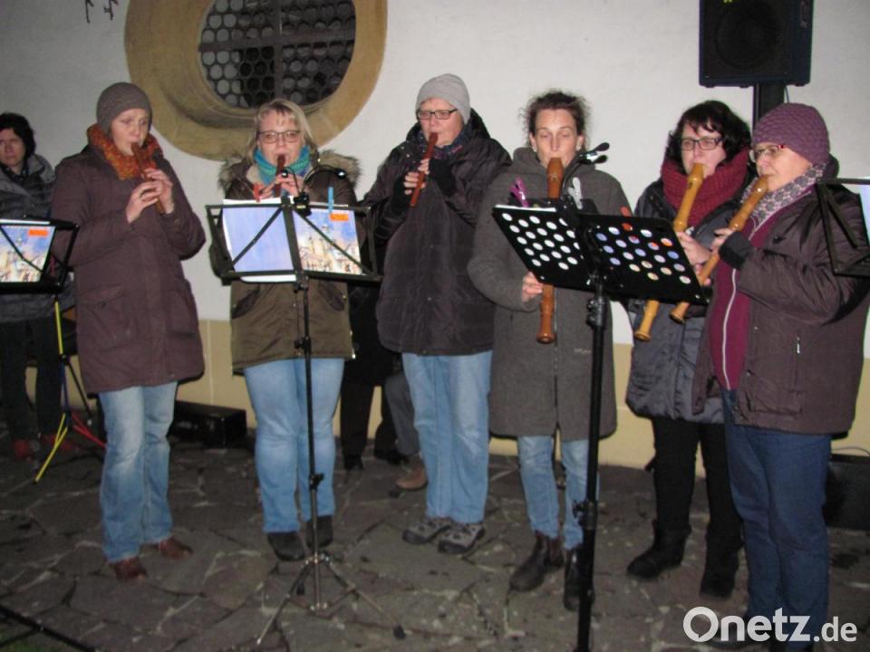 Die Bauhofmitarbeiter hatten mit einem beleuchteten Weihnachtsbaum für eine stimmungsvolle Kulisse gesorgt. Der Posaunenchor erfreute mit „Macht Hoch die Tür“ und „Kling-Glöckchen“. Bezaubernd war der Kinderchor mit „Mein Stern“, und „Meine kleine Kerze“. Für zarte Klänge sorgte der Flötenchor mit „Tochter Zion und „Lasst und froh und munter sein“. Die „Kolping-Singers“ besangen einen „Traum der Weihnachtszeit“ und beim „Glockenklang“ bewegten sich die Zuschauer im Rhythmus mit.
