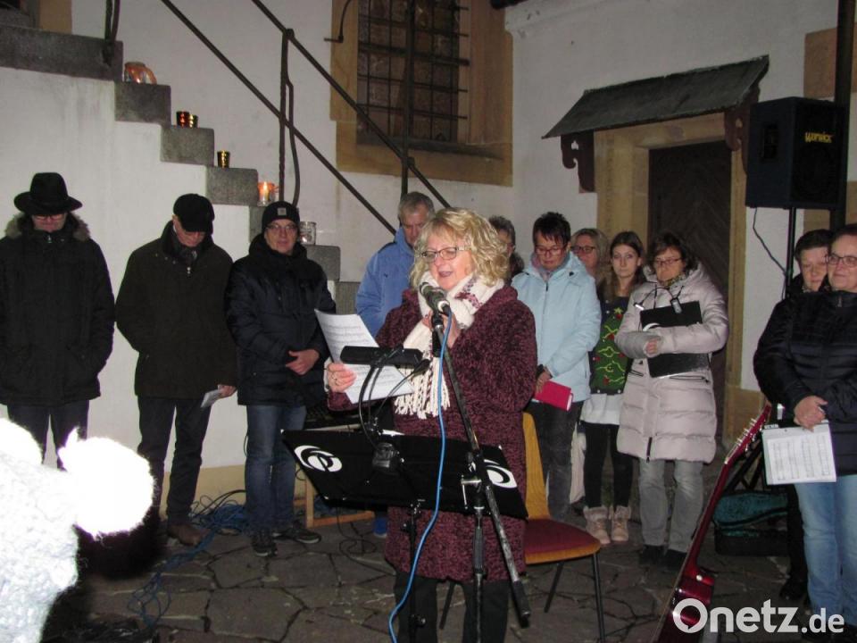 Gisela Reil begrüßte im romantischen Ambiente des evangelischen Kirchhofs die zahlreich erschienenen Zuschauer, darunter auch Bürgermeister Richard Kammerer, Landtagsabgeordneter Stephan Oetzinger und die Pfarrer Andreas Ruhs und Thomas Kohlhepp. Auf die Beine gestellt haben das Adventsansingen Gisela Reil, Annette Punzmann, Jutta Lippik und Rita Steiner. „Am allerschönsten finde ich, dass wir einen Weg gefunden haben, das in ökumenischer Zusammenarbeit auszurichten“, freute sich Reil. Pfarrer Ruhs warf humorvoll ein, dass die Pfarrer damit nicht mal Arbeit gehabt hätten.