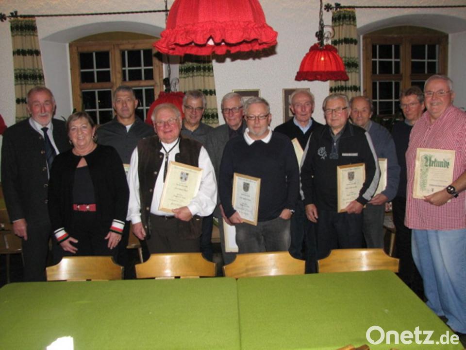 Vorsitzender Rudi Bayer überreichte in der Weihnachtsfeier mit seinem Vertreter Albert Puff, dem Ehrenvorsitzenden des Sängerkreises Herbert Kick und Bürgermeisterin Rita Steiner die Auszeichnungen. Patrick Bradley erhielt für zehn Jahre Singen Nadel und Urkunde vom Fränkischen Sängerbund. In Abwesenheit wurde Thomas Heisl für 25 Jahre ausgezeichnet. Für 40 Jahre Treue erhielt Werner Fischer Nadel und Urkunde vom Fränkischen und Deutschen Sängerbund. Gerhard Kraus wird dieselbe Ehrung nachgereicht. Nadel und Urkunde für 60 Jahre aktives Singen erhielten Ludwig Kohl und Rudi Bayer. Bereits auf 70 Jahre aktives Singen blicken Josef Koller, Martin Kummer und Willi Koller zurück. Sie traten dem Männergesangverein bereits in früher Jugend bei.Michael Bertelshofer erhielt für 32 Jahre Chorleitung und 40 Jahre Mitgliedschaft ein Geschenk.