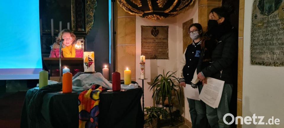 Dieses Jahr wurde ganz besonders an die Ukraine gedacht und allen, die unter Krieg und Gewalt leiden. Die Lektorinnen zündeten Kerzen für den Frieden und für die Hoffnung an. Passend zu den jeweiligen Texten gestaltete der Frauensingkreis unter Leitung von Susanne Hausmann und Susanne Stark den Gottesdienst mit Liedern. Die Sängerinnen wurden von Hans Grajer an der Orgel begleitet. Anstelle eines gemütlichen Beisammenseins gab es für die Kirchenbesucher eine Tüte mit englischem Teegebäck, einem Beutel Tee und Samenkörnen, um Frieden und Hoffnung zu säen. Den Abend und die Tütchen hatte das Organisationsteam vorbereitet. Alle Texte und Lieder waren auf einer Leinwand mitzulesen.