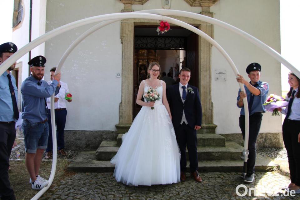 Den Bund fürs Leben schlossen am vergangenen Samstag in der Kirche St. Jakobus in Marchaney die 24-jährige Sabrina, geborene Hecht, aus Matzersreuth und der 26-jährige Landwirt Rainer Mark aus Dippersreuth. Bei der kirchlichen Hochzeit dabei war natürlich auch das gemeinsame einjährige Töchterchen Elisa. Die standesamtliche Trauung fand bereits im April vor mehr als einem Jahr im Rathaus in Großkonreuth statt. Kennengelernt hat sich das Paar 2019 beim Tirschenreuther Faschingszug. Die kirchliche Trauung nahm Tirschenreuths Kaplan Ramon Rodriguez vor. Gesanglich wurde die Brautmesse von Ramona Reber umrahmt. Nach der Hochzeit wurden die frisch Vermählten von vielen Gratulanten empfangen. Glückwünsche gab es von der Feuerwehr Dippersreuth, die Eheleute sind beide in der Wehr aktiv. Auch die Jungbauernschaft Tirschenreuth gratulierte. In dem Verein ist der Bräutigam Mitglied des Vorstands. Der anschließende weltliche Teil der Hochzeitsfeier fand beim "Schomerwirt" in Griesbach statt. Die junge Familie wohnt auch weiterhin in Dippersreuth.
