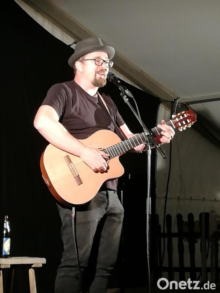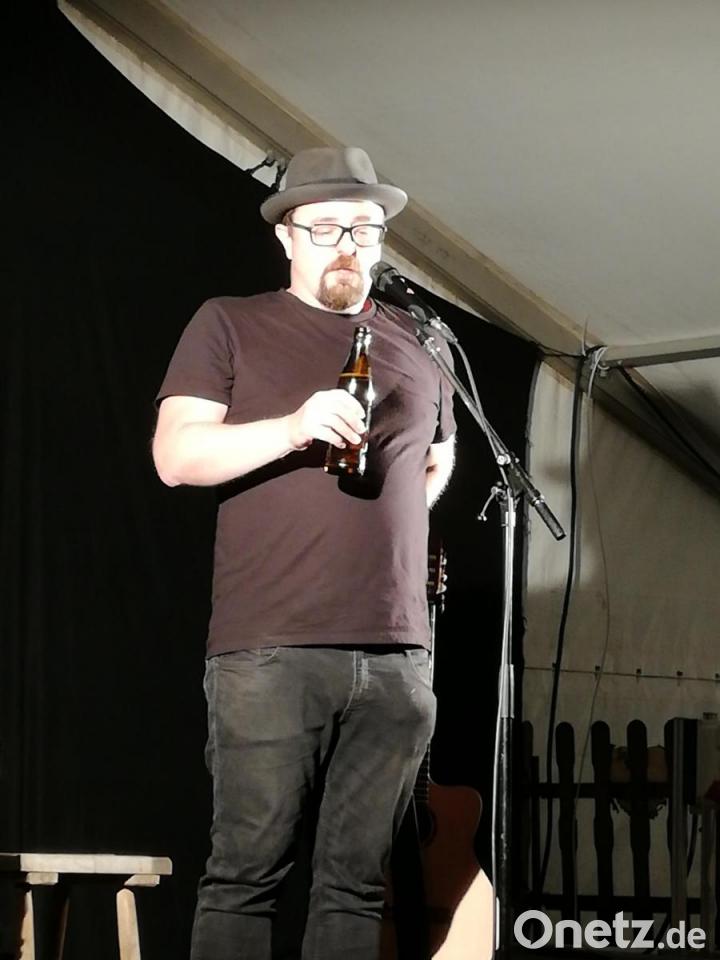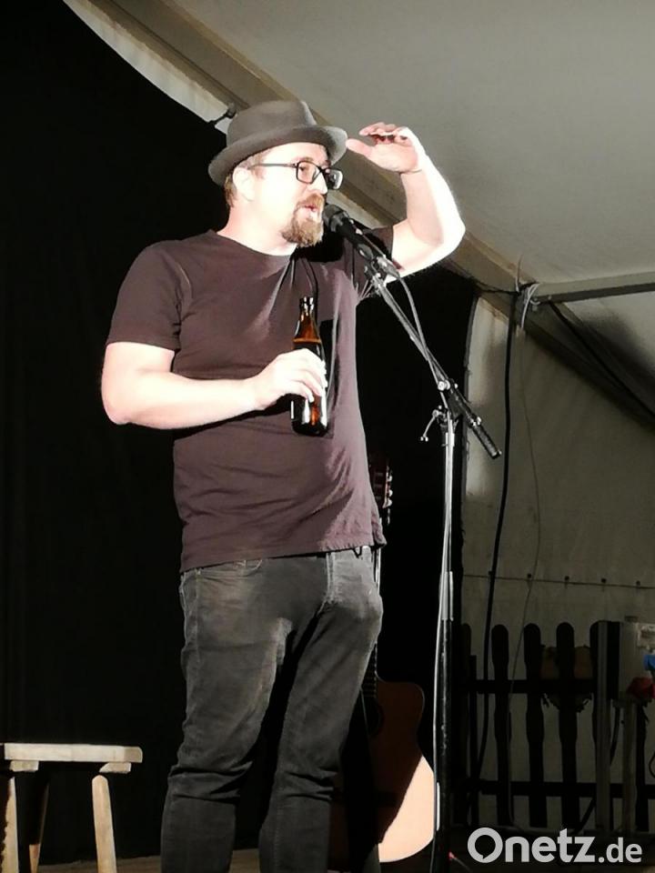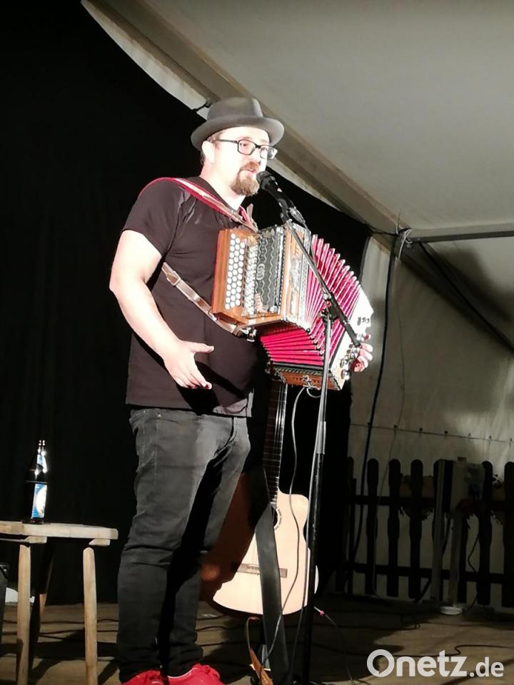 Nach der Einleitung der Vorsitzenden des Kulturkastls, Anita Meier, legte der Rundinger im gut gefüllten Zelt los. Viel braucht er nicht, der Binser: schwarzer Hut, schwarzes T-Shirt, schwarze Hose. Dazu seine Instrumente und noch einen Tisch für sein Bier. Es dauert keine fünf Minuten, dann hat der sympathische Oberpfälzer die Zuhörer im Zelt für sich gewonnen.