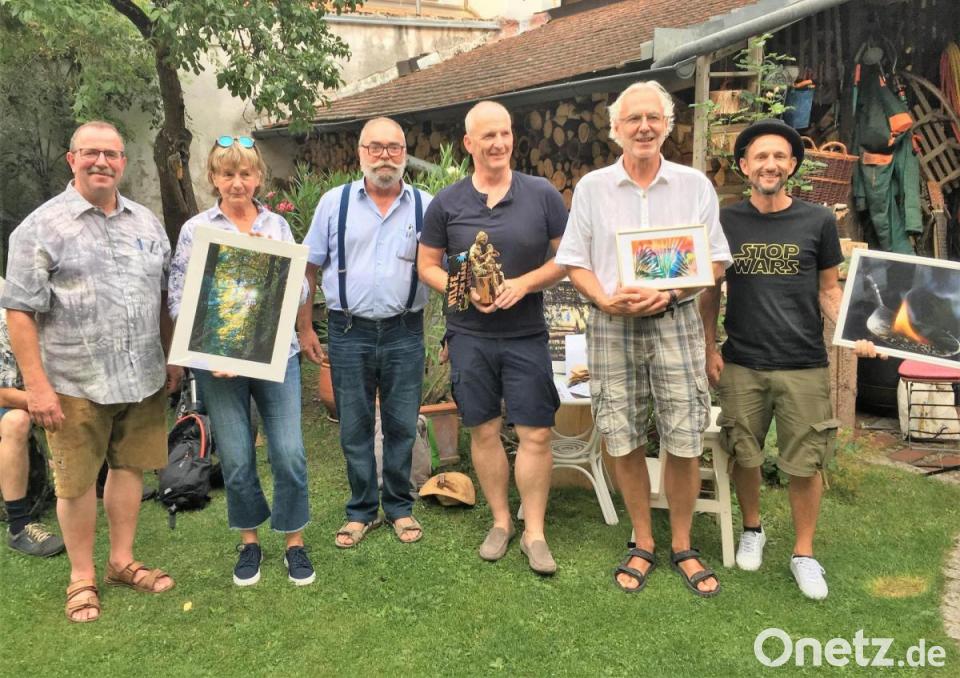 Vieles sei im Vorfeld zu tun gewesen, Otterbein streifte das in seiner kurzen Rede: von Absprachen mit dem Wasserwirtschaftsamt über bunte Straßenmarkierungen für die Kirwa-Strecke, von Gesprächen mit Pfarrer Johannes Arweck, der die Marktkirche als Ausstellungsraum zu Verfügung stellte, über Dialoge mit vielen Kastlern, die Stadel, Garagen und Einfahrten für die Kunst räumten, bis hin zum Catering bei der Vernissage und dem Bepflanzen der vielen Schuhe, die den Kirwa-Weg säumten. Auch die Gewinner des Foto-Wettbewerbs wurden gekürt.