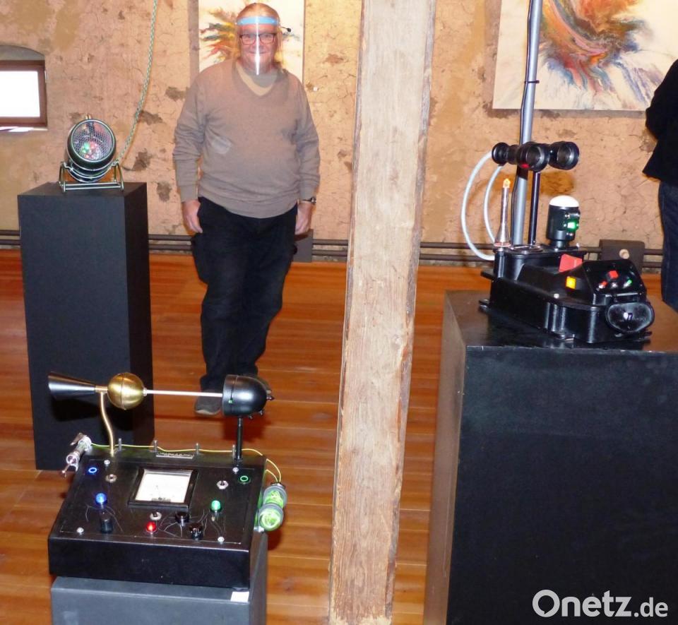 Stefan Stock aus Kastl ist ein Lichtkünstler. Er findet seine Objekte auf Schrottplätzen, beim Altwarenhändler oder auf dem Recyclinghof. So baut er aus alten Blechgehäusen, Rohren und Schaltschränken die tollsten Objekte, die blinken, leuchten, ihre Farbe verändern oder klingen.