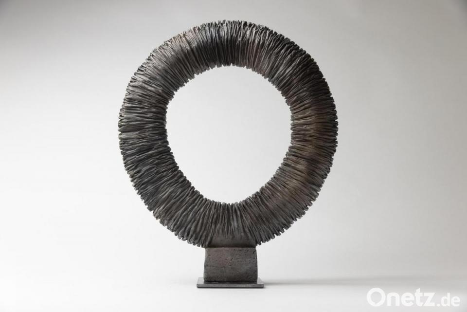 Keramik aus dem Feuer zeigt Karin Röser aus Altdorf. Ihre Werke gehen durch ein aufwendiges Verfahren: Inspiriert von der Natur, baut die Künstlerin eine Form, poliert und verdichtet ihr Objekt. Gebrannt wird es erst im Elektro-Ofen und dann im offenen Feuer. Die farblichen Nuancen in verschiedenen Grau-, Blau- und Rottönen entstehen durch den Oxidationsprozess während des Rauchbrands. „Es regiert der Zufall: Nie weiß ich, mit welchem Ergebnis ich rechnen kann“, sagt die Künstlerin (Info: www.feuerwerk-roeser.de).