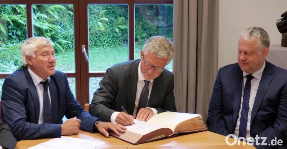 Landrat Richard Reisinger hatte zum Treffen in Kastl das goldene Buch des Landkreises Amberg-Sulzbach mitgebracht. Er sprach davon, nicht nur wirtschaftliche Verbindungen zu den Ostländern aufzubauen, sondern auch die Versöhnung zu suchen. Die Ukraine sei europäischer als viele glaubten. So habe man wegen Fachkräftemangel eine ukrainische Ärztin ans Krankenhaus in Sulzbach-Rosenberg geholt, die mit nach Kastl gekommen war.