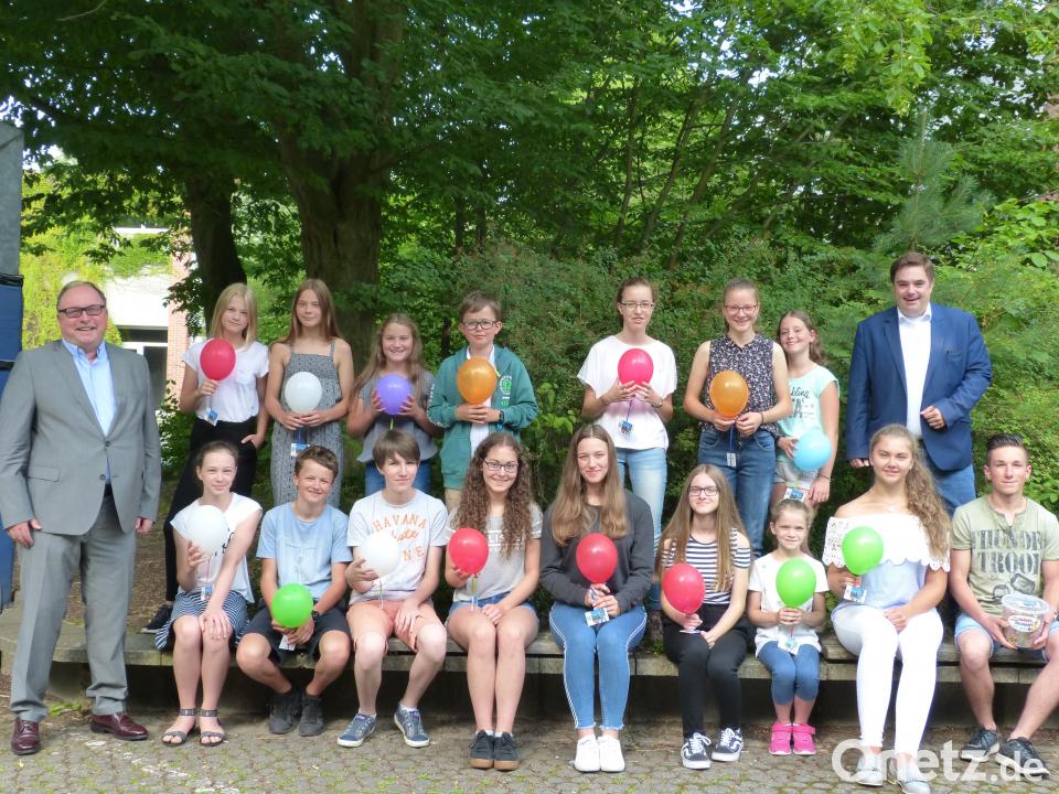Einen Strauß bunter Luftballons hatte der Vorsitzende des Fördervereins des OHG, Sebastian Macht, für die Jahresbesten des Marktredwitzer Gymnasiums vorbereitet, als er zusammen mit Studiendirektor Stefan Niedermeier M.A. die 15 besten Schülerinnen und Schüler der Bildungseinrichtung honorierte. An jedem der farbigen Ballons hing ein MAKgutschein. „Ihr habt in den vergangenen Monaten herausragende Leistungen in allen Fächern erbracht“, lobten Schulleiter Niedermeier und Vorsitzender Macht die jungen Leute für deren ausgezeichneten Zeugnisse. Geehrt wurden Julian Scherm, 9b, Franziska Wächter, 9a, Amelie Schöpe, 8b, Miriam Andritzky, 10d, Emily Bieber, 6a, Lily Schübel, 6c, Saskia Fuchs, 9b, Amelie Buba, 5a, Teresa Daniel, 5a, Leni Christl, 8a, Nicholas Seifert, 7a, Justus Korf, 7c, Luisa Hellerl, 6b, Ronja Seifert, 6b, Maya Kastner, 10d und Magnus Korf, 5c.