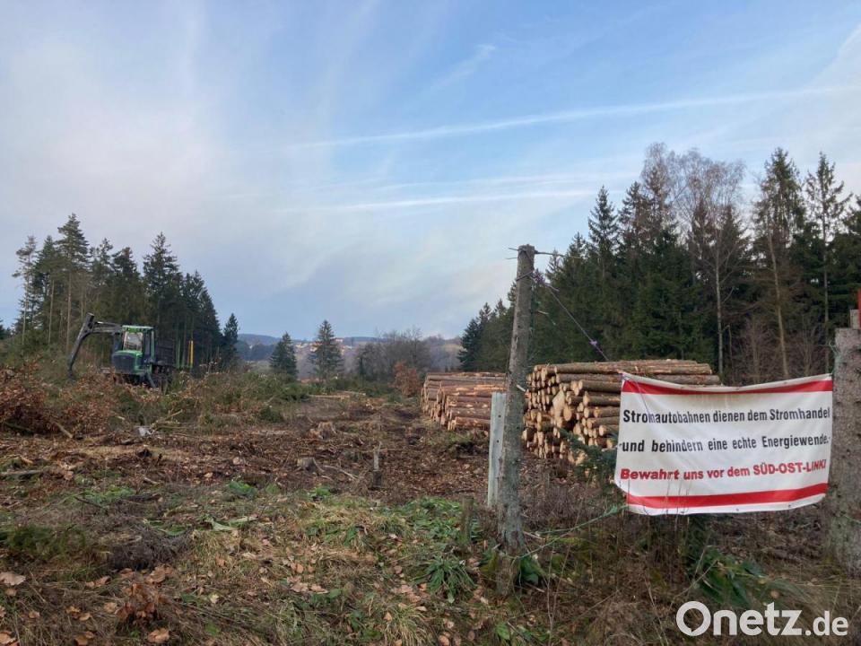 Die schweren Eingriffe in die Natur durch die HGÜ-Leitung Süd-Ost-Link wird in der Gemeinde Brennberg bei Regensburg schon heute sichtbar: Hier hat der Netzbetreiber Tennet auf rund vier Kilometern eine 40 Meter breite Schneise in einen alten Baumbestand schlagen lassen. Noch vor der offiziellen Baugenehmigung, dem sogenannten Planfeststellungsbeschluss, sei dies durch das neue Netzausbaubeschleunigungsgesetz (Nabeg) ermöglicht worden, heißt es in der Mitteilung. Durch die Rodungen sei ein zusammenhängendes Waldgebiet unwiederbringlich zerstört.