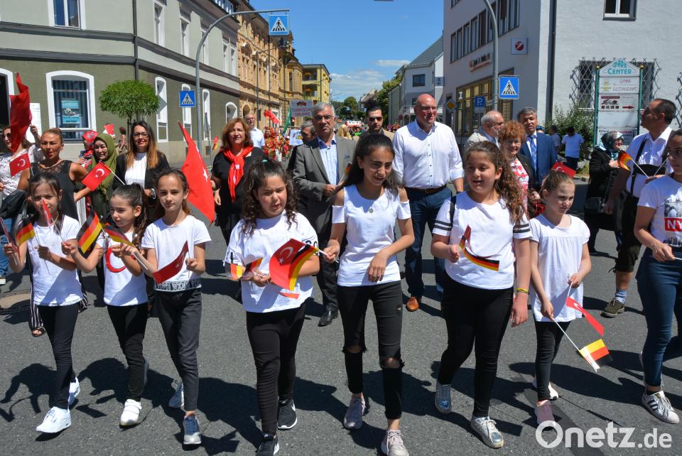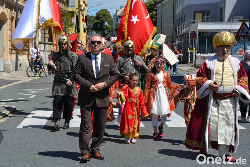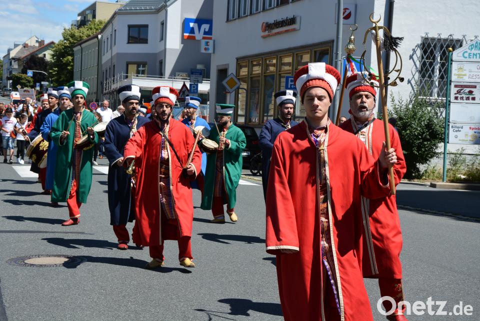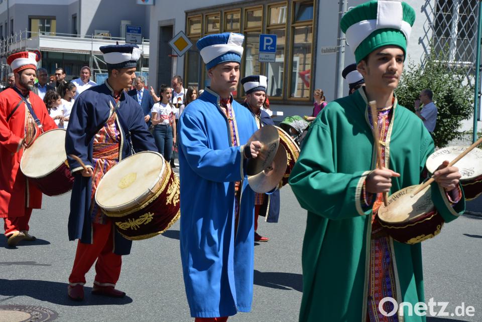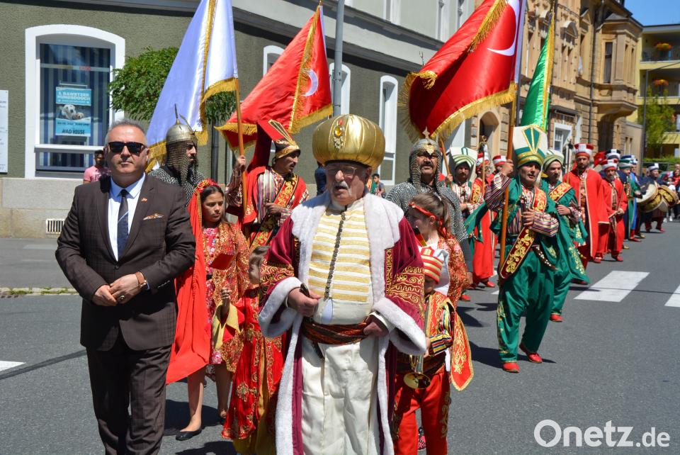 (jr) Farbenprächtige Kostüme und orientalische Musik waren die Kennzeichen des Festzugs, zu dem der Türkisch-Islamische Kulturverein am Sonntagmittag eingeladen hatte. Angeführt von Vorsitzendem Celal Öztürk marschierten über 500 türkische Bürger mit durch die Straßen. Die Stadt Marktredwitz wurde durch Oberbürgermeister Oliver Weigel vertreten, der von der Moschee aus mitmarschierte. Polizisten der PI Marktredwitz sperrten die Straßen, so das der Festzug ungehindert durch die Innenstadt marschieren konnte.