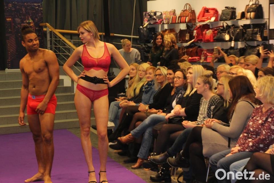 Zu fetziger Musik präsentierten am Donnerstagabend drei weibliche und ein männliches Model dem ausschließlich weiblichem Publikum die neuesten Dessous. Auf dem Laufsteg standen Curvie-Model Katja sowie Victoria, Cloe und Rick. Mit dabei war auch ein Teufelsgeiger, der die Herzen vieler Frauen mit seiner Musik im Sturm eroberte.