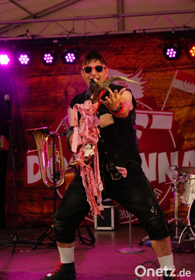 In diesem Jahr fiel die Wahl der Organisatoren auf die fränkische Combo "Dochrinna". Die fünf Jungs aus Hirschaid hatten ihr Publikum von Anfang an im Griff, ein Gassenhauer jagte den Nächsten. Basti, Fabi, Olli, Uwe und Dieter kannten hier kein Pardon und so gut wie keine musikalische Hürde. Dem gemütlichen Schunkelsong "Sierra Madre" folgte kurzerhand "Westerland" von den Ärzten, und Helene Fischer wechselte sich mit Elvis Presley, Udo Jürgens oder diversen, gut abgehangenen Oldies ab. Besonders gern gaben sie auch den Volks-Rock-'n'-Roller Andreas Gabalier. Zunehmend wurde es daher dichter auf der Fläche vor der Bühne, das Tanzbein schwingen war einfach Pflicht.