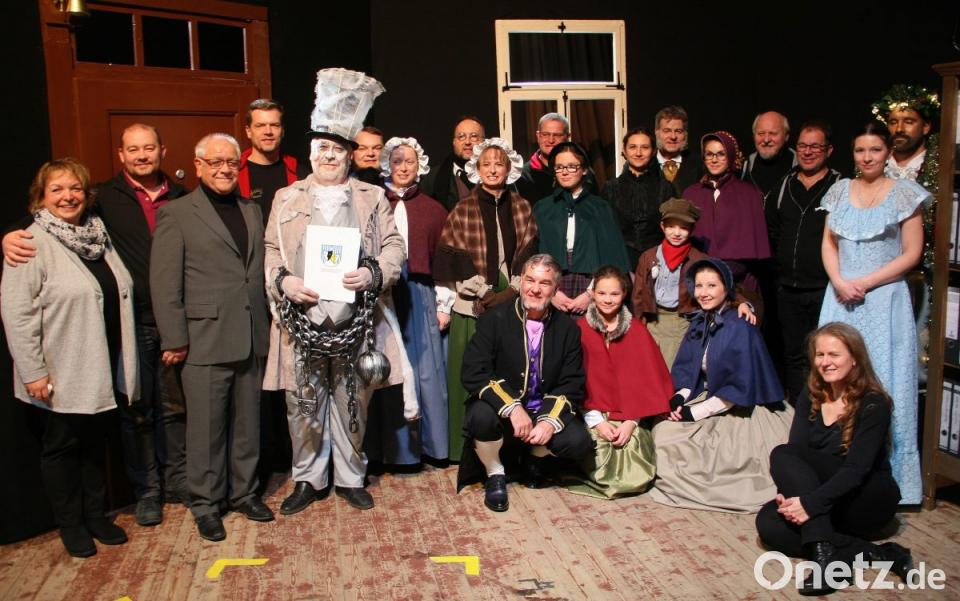 Eine Überraschung erwartete Thomas Meyer, der in "Fröhliche Weihnachten, Mr. Scrooge – A Christmas Carol" den Geist Jacob Marley verkörperte. Nachdem der Applaus verklungen war, scharte Regisseur und Theaterleiter Jürgen Bauer sein Ensemble um sich. Danach bat er seinen Vorgänger Kurt Rodehau auf die Bühne. „Eine wunderbare Vorstellung“, lobte Rodehau die vor wenigen Minuten zu Ende gegangene Aufführung. Zudem hatte er zwei Urkunden mitgebracht. Eine stammte vom Bund Deutscher Amateurtheater. Verbunden war die Auszeichnung mit der Goldenen Ehrennadel. Eine weitere Urkunde hatte der Verband Bayerischer Amateurtheater ausgestellt.